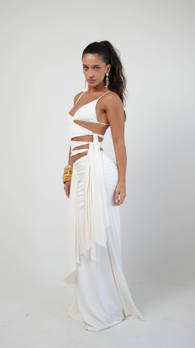 Saia longa confeccionada em poliamida com elastano, com tecido duplo que garante conforto, estrutura e zero transparência. O comprimento alongado traz elegância, e as laterais drapeadas valorizam a silhueta e deixam o visual mais moderno. Ao centro, uma faixa longa adiciona movimento e um toque sofisticado à peça. Com caimento fluido e versátil, é ideal para compor looks estilosos.